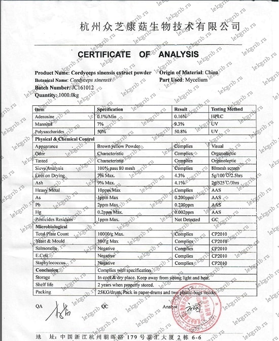 Экстракт Кордицепс Китайский (Cordyceps sinensis)